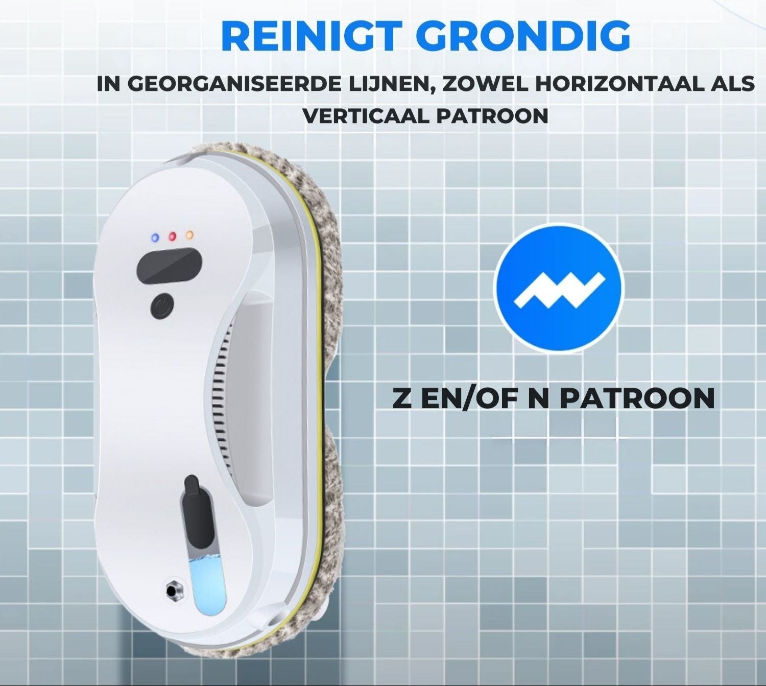 The CleanSweep Window Robot combines intelligent software with an advanced gyroscope, effortlessly removing dirt and dust from windows, tiles, glass doors, and tables. Thanks to its rotating pads, water spray system, and edge and collision sensors, the robot works thoroughly and safely, without any risk of damage. With its 5-meter cable and easy operation, no spot is out of reach, making cleaning easier than ever!